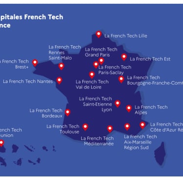 The strategic locations to expand are France tech hubs (like Paris, the largest startup campus in the world, with Station F), Bordeaux fintech, and Grenoble semiconductors.